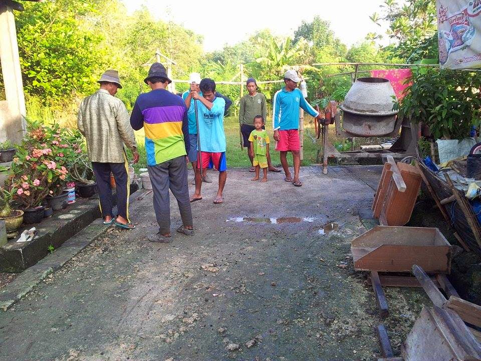Tampak para warga desa kembangan melakukan gotong royong dengan semangat untuk perbaikan jalan tepat di belakang rumah Almarhum bapak Supriadi (bapakne Heru, Agung & Guntoro) atau rumah Wak Mun jari.